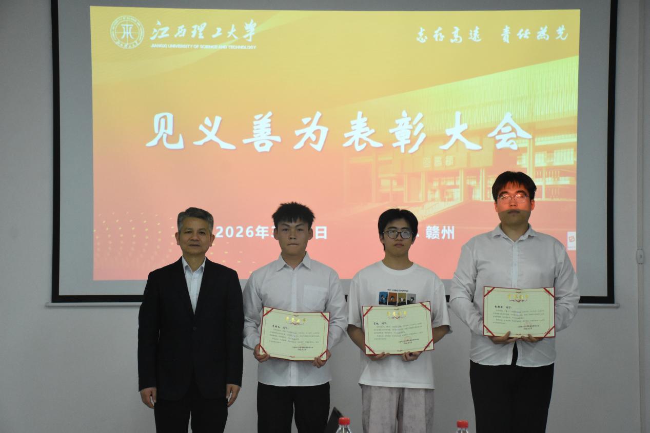 会上,党委武装部部长、保卫处处长陈龙泉宣读了学校平安建设领导小组《关于对材料科学与工程学院包超然、肖馗和李鹏飞三位同学的通报表彰决定此前,包超然、肖馗和李鹏飞三位同学在校园周边路遇昏迷男子,沉着分工、规范施救,为伤者赢得宝贵救治时间,事迹被《新法治报》专题报道,充分展现了江理学子的责任担当与良好精神风貌。