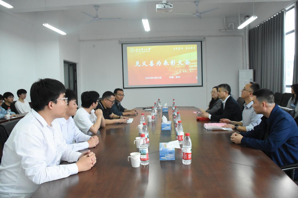 本网讯 3月23日下午,为推进平安建设主题宣传月走深走实,大力弘扬见义善为先进事迹,学校在三江校区西园昌绪楼317会议室召开见义善为表彰大会。校党委常委、副校长董冰岩出席大会,党委武装部、党委学生工作部、材料科学与工程学院相关负责人参加会议,会议由材料科学与工程学院党总支书记兼院长游维雄主持。