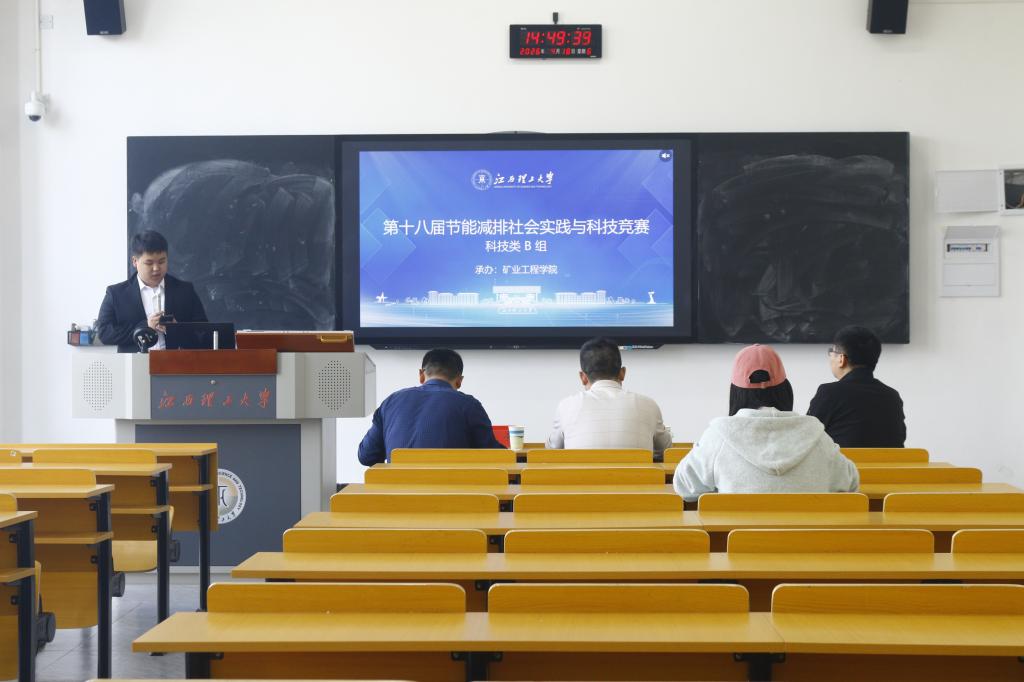本网讯  4月18日,为响应国家“双碳”行动号召,激发大学生创新实践能力,校实践教学办公室办、矿业工程学院承办的校第十八届大学生节能减排社会实践与科技竞赛决赛于在三江校区(西园)阳明楼举办。